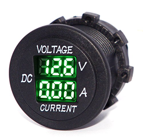 Cllena Digital Multimeter Current Tester & Voltage Tester for Boat Marine Vehicle Motorcycle Truck ATV UTV Car Camper LED Round Panel(Green LED)